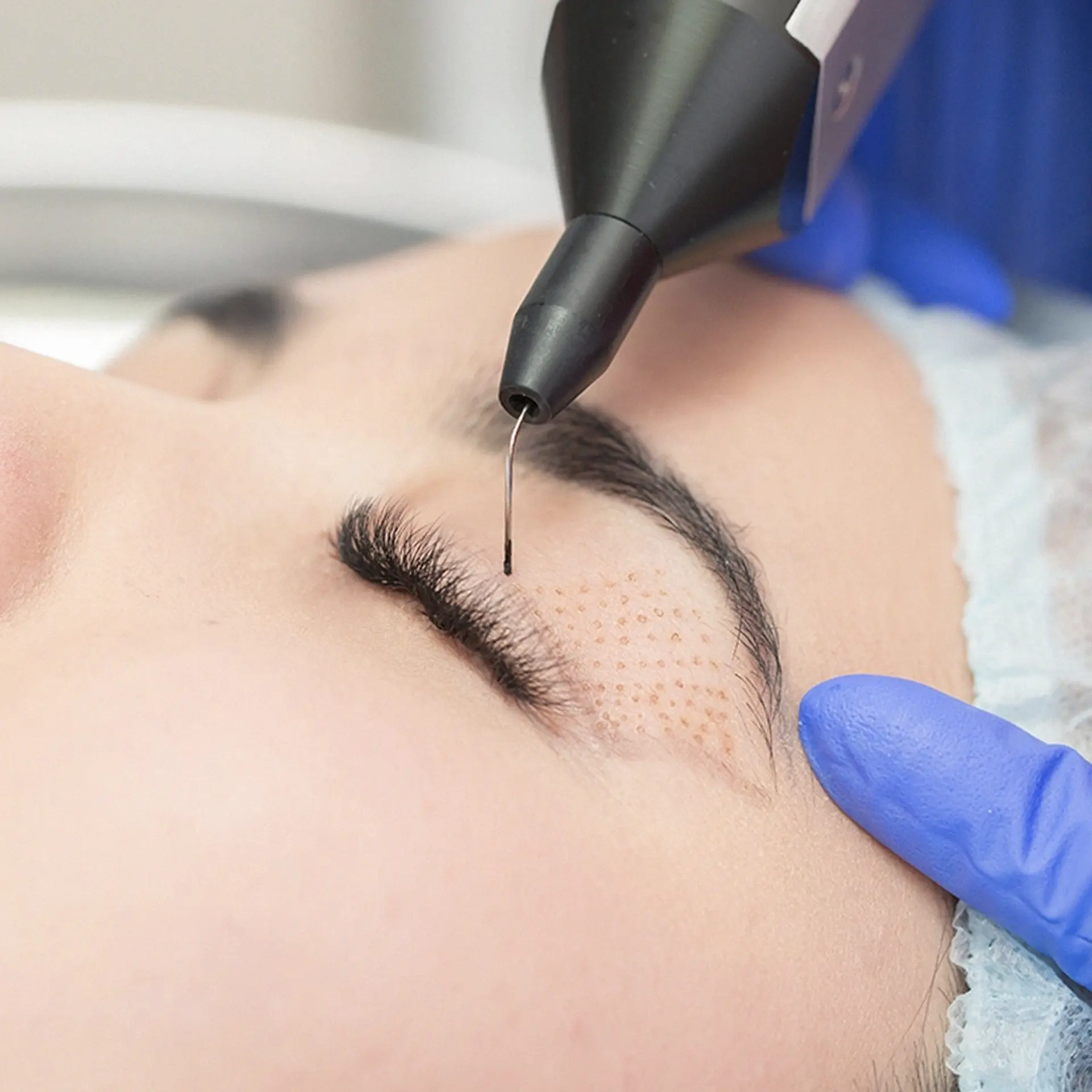 Blefaroplastia não cirúrgica, rugas finas, flacidez localizada e remoção de pequenas lesões.